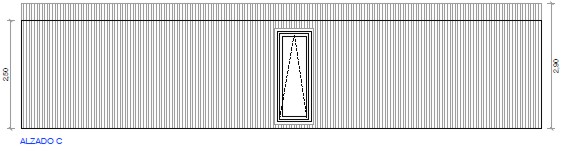 - Lamas verticales exteriores de madera de conífera tratada en autoclave de 6×2 cm., con junta abierta de 8 mm. , fijadas mediante tirafondos desde la cara exterior.